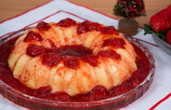 Esse pudim de chocolate branco com calda de morango é o tipo de sobremesa que acaba rapidinho. É leve, cremoso e tem aquele brilho encantador que deixa tudo com cara de celebração.