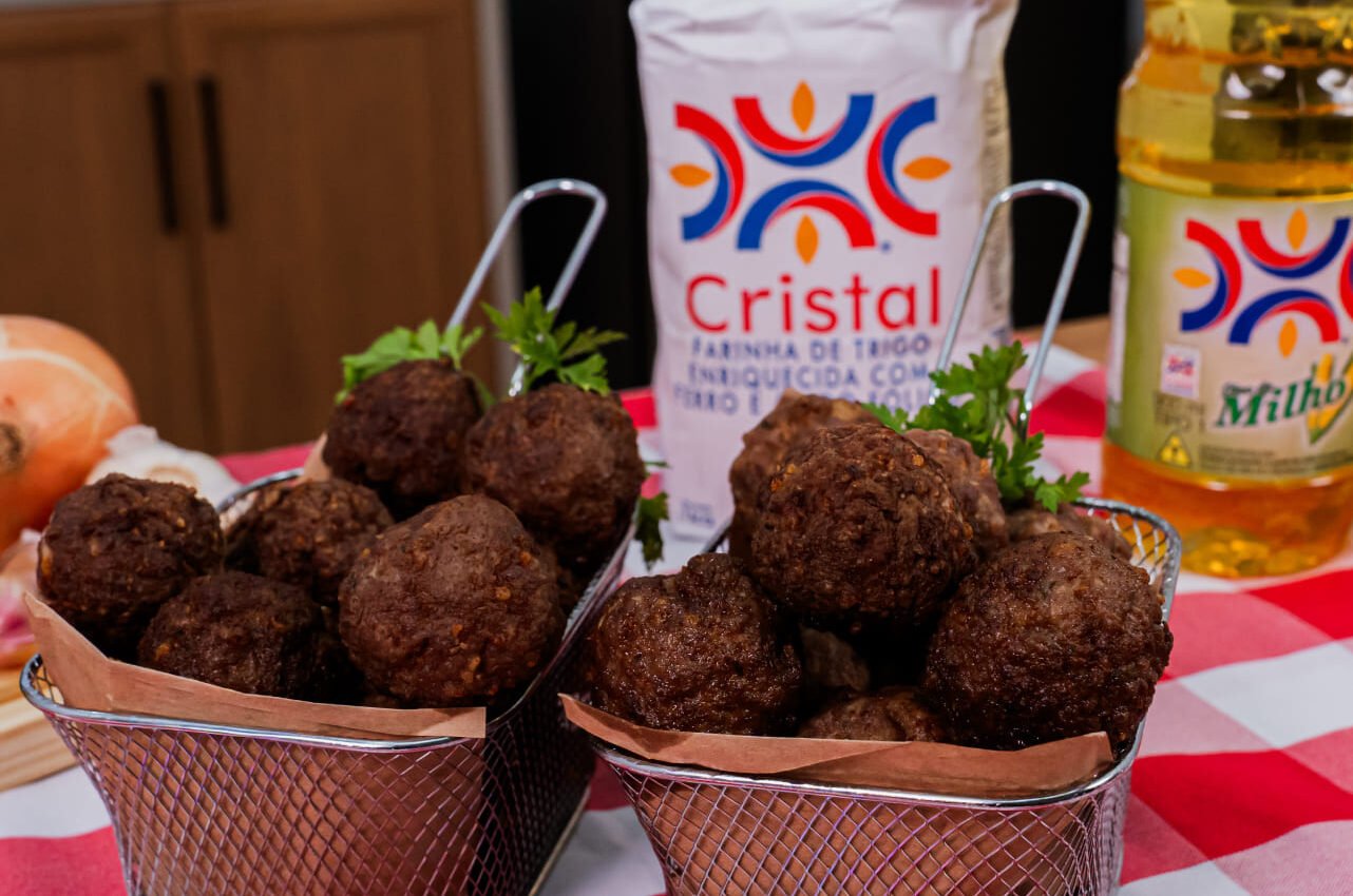 A porpeta recheada é um petisco perfeito para reunir a família, especialmente nos dias de jogo. Preparada com carne moída bem temperada e recheada com cubinhos de muçarela, ela fica irresistível quando frita no Óleo Cristal, garantindo uma crocância deliciosa.